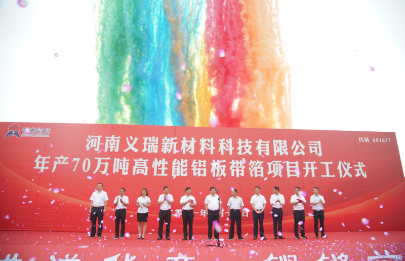 7月18日,明泰鋁業(yè)舉行河南義瑞新材料科技有限公司年產(chǎn)70萬噸高性能鋁板帶箔項(xiàng)目開工儀式。