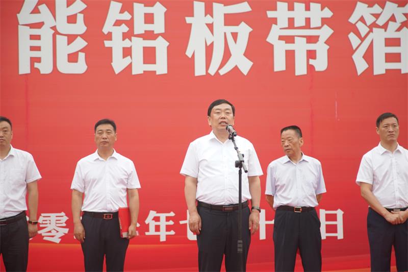 王躍舉宣布項(xiàng)目開工令。河南義瑞新材料科技有限公司年產(chǎn)70萬噸高性能鋁板帶箔項(xiàng)目正式開工!